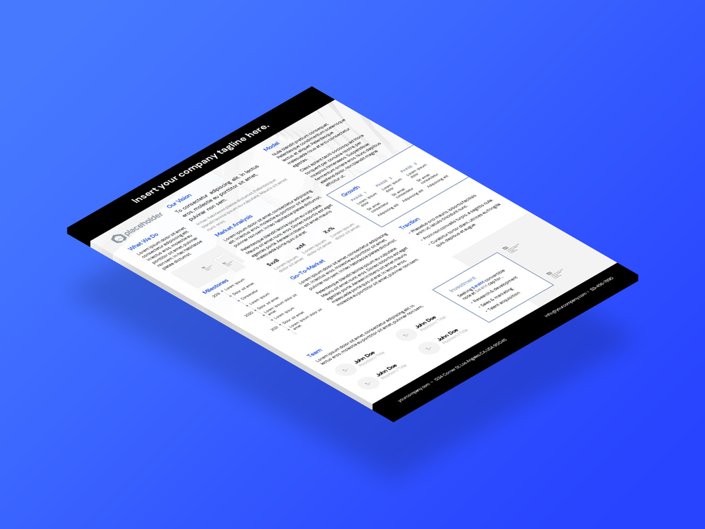 This one-pager Executive Summary template for PowerPoint and Keynote is perfect for crafting a succinct & eye-catching overview of your big idea for investors, advisors, partners, customers, and more!