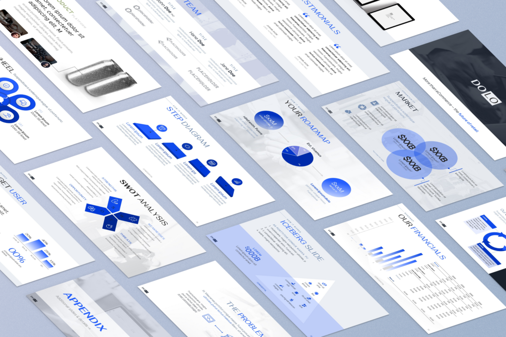 The slide designs featured in the preview images are from the Ultimate Pitch Deck Template: a versatile PowerPoint template based on 100+ decks that raised over $100M! Check it out here or browse all our pitch deck templates →
