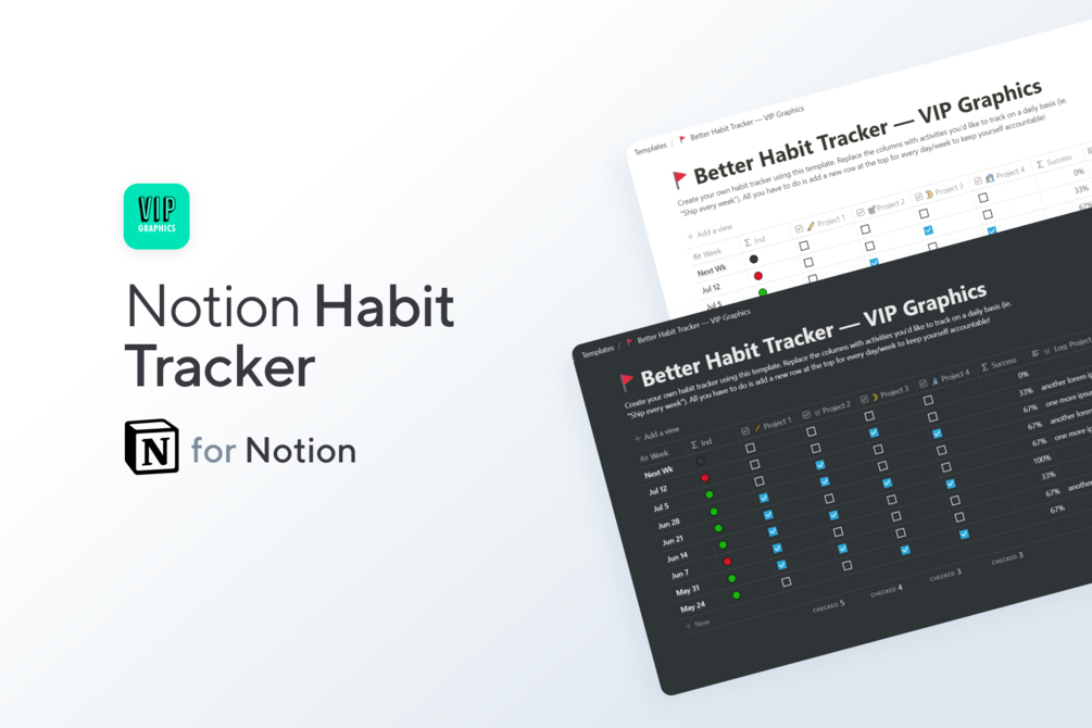 Create your own habit tracker using this Notion template. Replace the columns with activities you'd like to track on a daily or weekly basis. All you have to do is add a new row at the top for every day/week to keep yourself accountable!