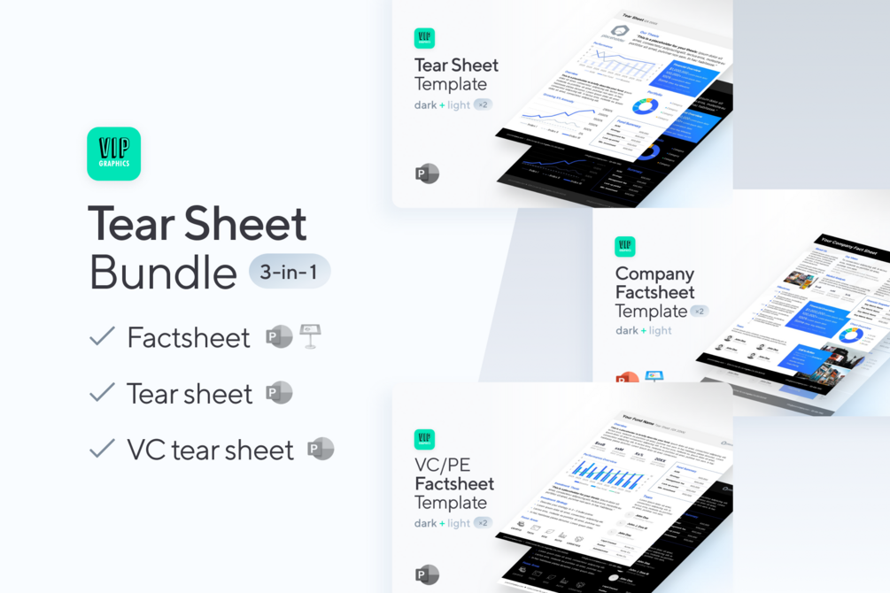 This bundle of three tear sheet templates for PowerPoint is perfect for crafting a succinct & eye-catching overview of your firm's performance for LPs & investors!