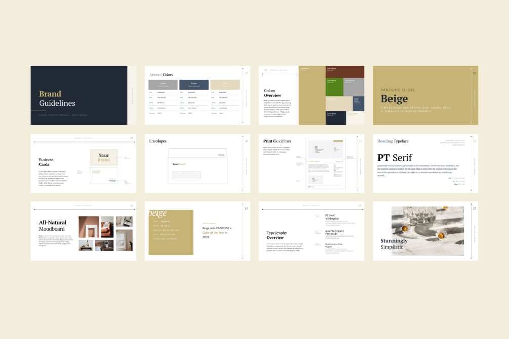 This one-of-a-kind brand book-style layout is designed in PowerPoint -- so there's no need for you to spend time on designing the layout with InDesign or Photoshop. Instead, in minutes you can re-create a gorgeous branding book that's uniquely yours. Just use PowerPoint to quickly & easily create gorgeous brand guidelines for your brand.