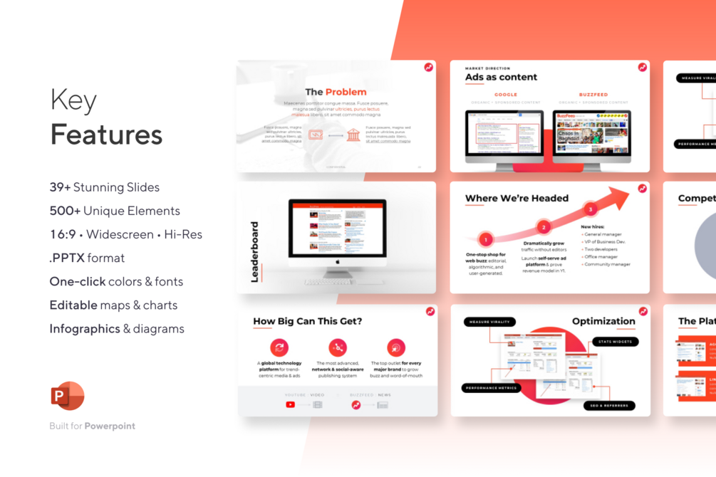 Since then, the media giant has raised over $696M in total funding and gone public. We’ve redesigned the original BuzzFeed pitch deck as a modern PowerPoint template that you can use to pitch your media or technology startup.