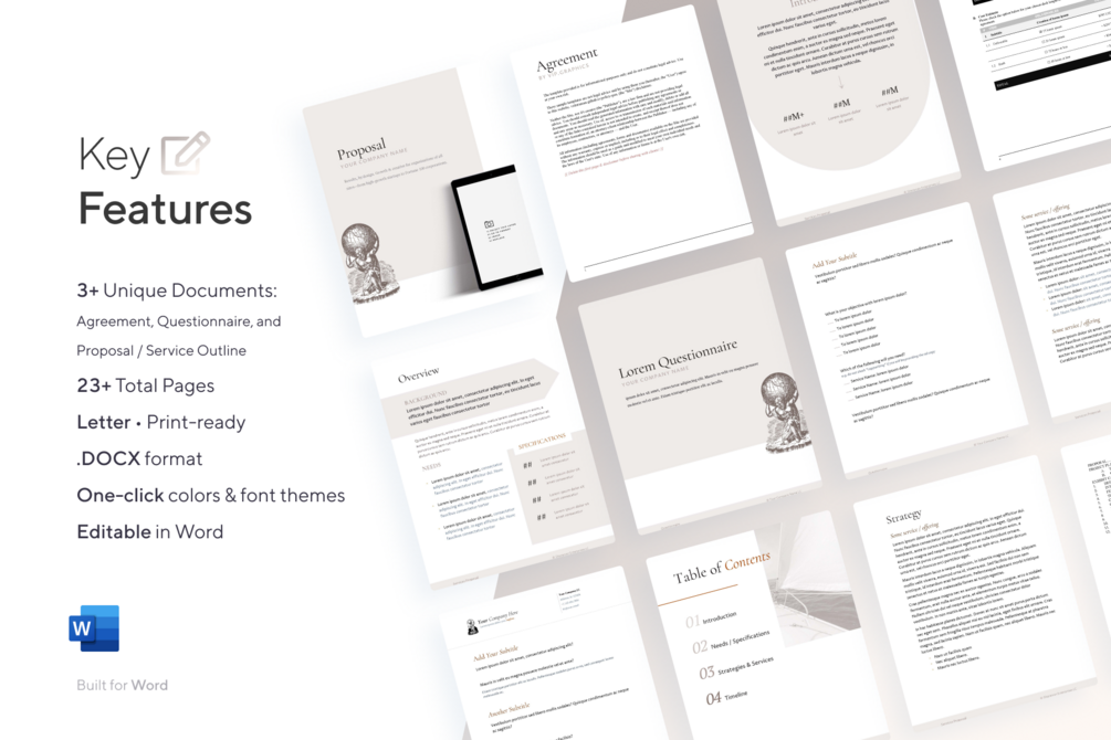 Word templates for proposals, questionnaires & agreements.