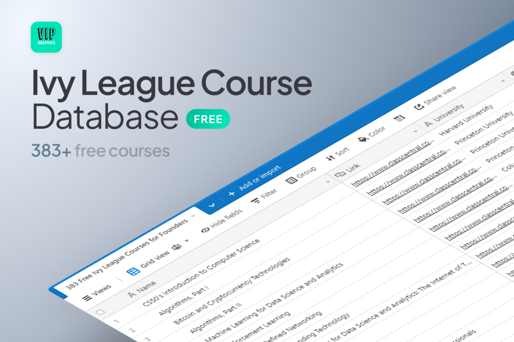 Database of 380+ free Ivy League courses for startup founders