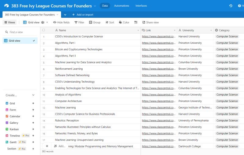As a startup founder, you're always on the lookout for new ways to learn and grow. If you're eager to dive into topics like AI, computer science, business, math, health and medicine, education, programming, engineering, social sciences, data science, or personal development, this comprehensive list of over 380 free Ivy League courses is for you.