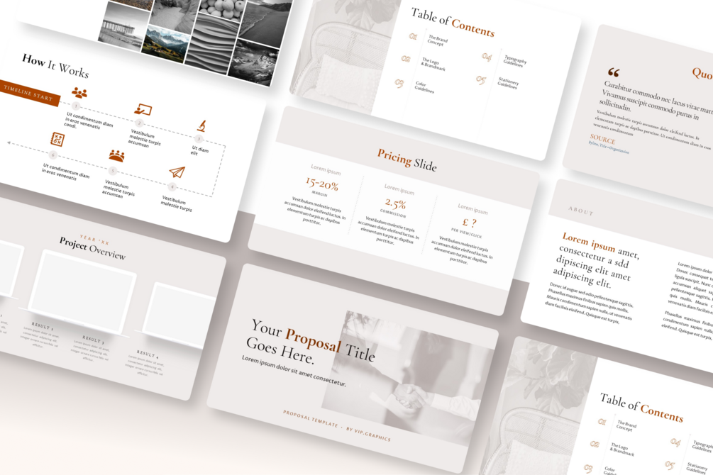 Inside this template set you'll find all the slides & pages you need to seamlessly onboard a new client: from testimonials and case studies to pricing and timeline — land the right customers and make a stunning first impression!