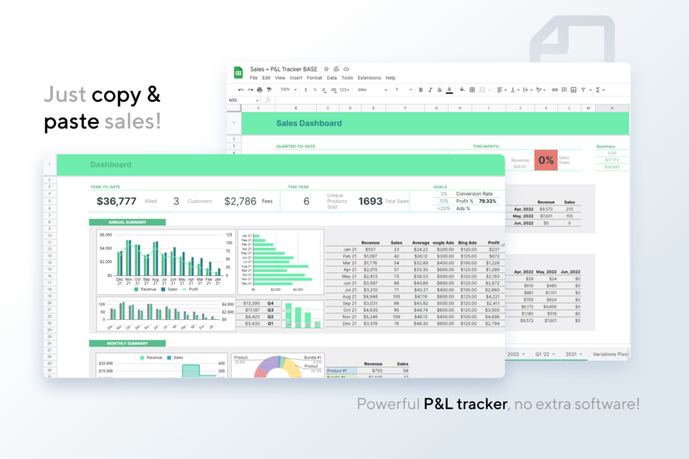 This is not a subscription for software: pay just once, and get your own Sales + P&L Tracker for life!