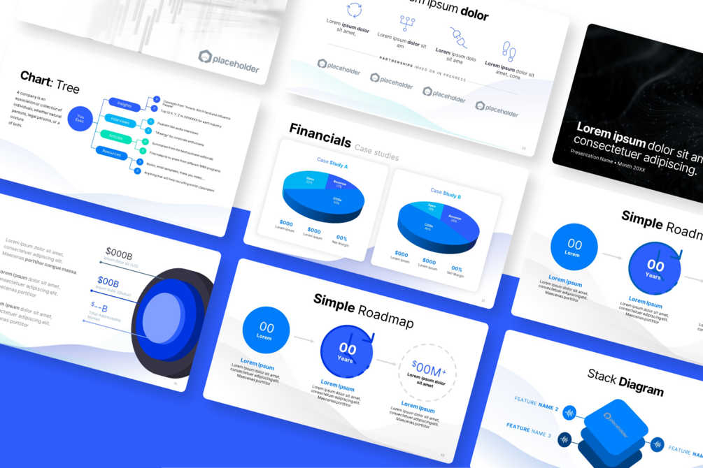 Our completely editable and flexible layout is quick and easy-to-use: just add your content, drag-n-drop photos, and change color/fonts with a few clicks as desired. These slides & templates were designed to help startups create high-quality and impactful pitch decks that accelerate the fundraising or sales process. Our templates include elements proven to be consistently successful by companies ranging from Silicon Valley upstarts to Fortune 100 giants.