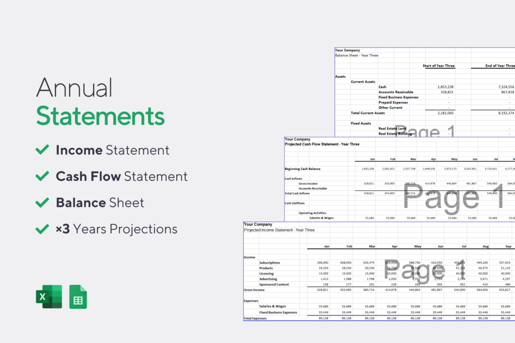 - All key annual financial statements: Balance Sheet, Income Statement, Cash Flow Statement, etc.